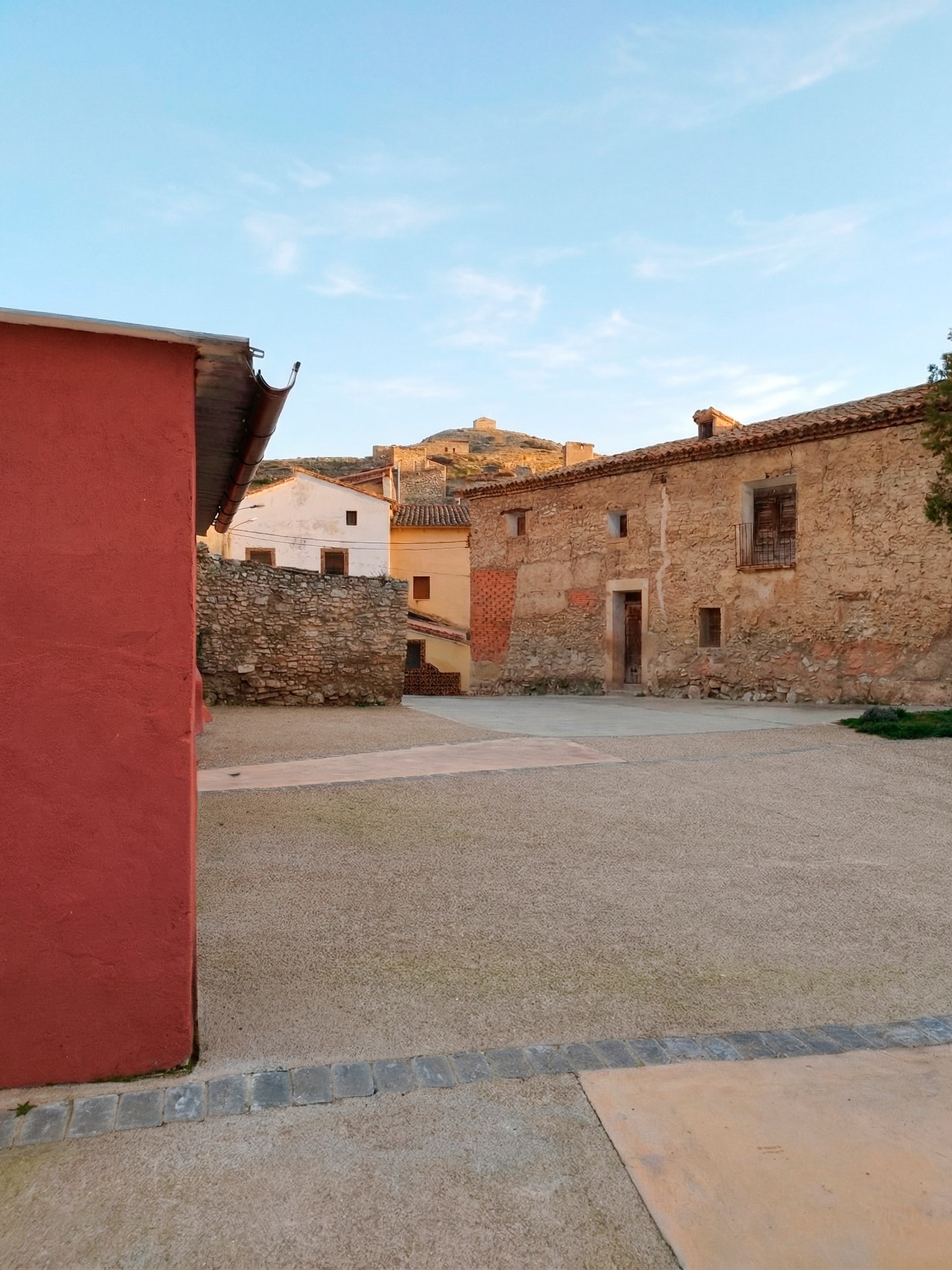 La propuesta se organiza a partir de un trazado orgánico que se adapta a la topografía y al uso del espacio, combinando superficies de árido compactado con recorridos de piedra que estructuran los itinerarios y delimitan las distintas zonas. Los materiales empleados, acordes con el contexto, refuerzan la integración del conjunto tanto en el paisaje urbano como en el entorno rural.